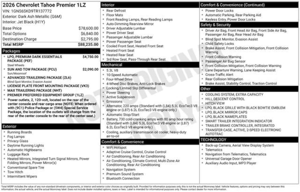 New 2026 ChevroletTahoe Premier 4WDFor Sale or Lease in Little Falls, NJ
