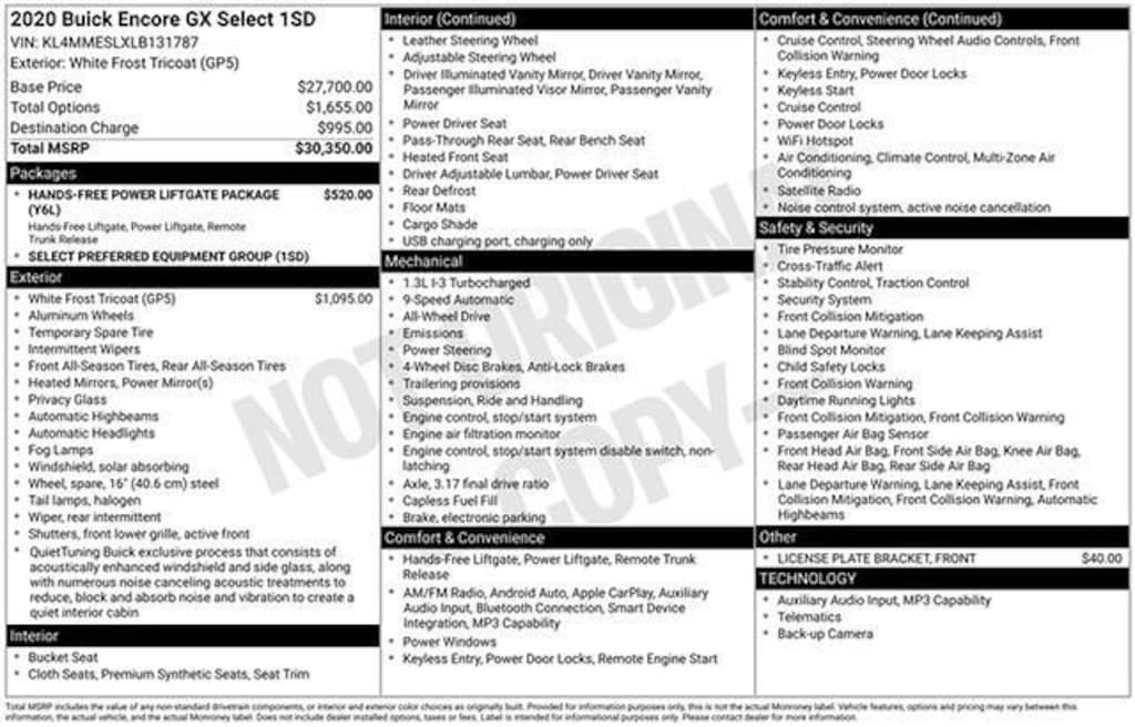 Used 2020 BuickEncore GX Select All-Wheel Drive