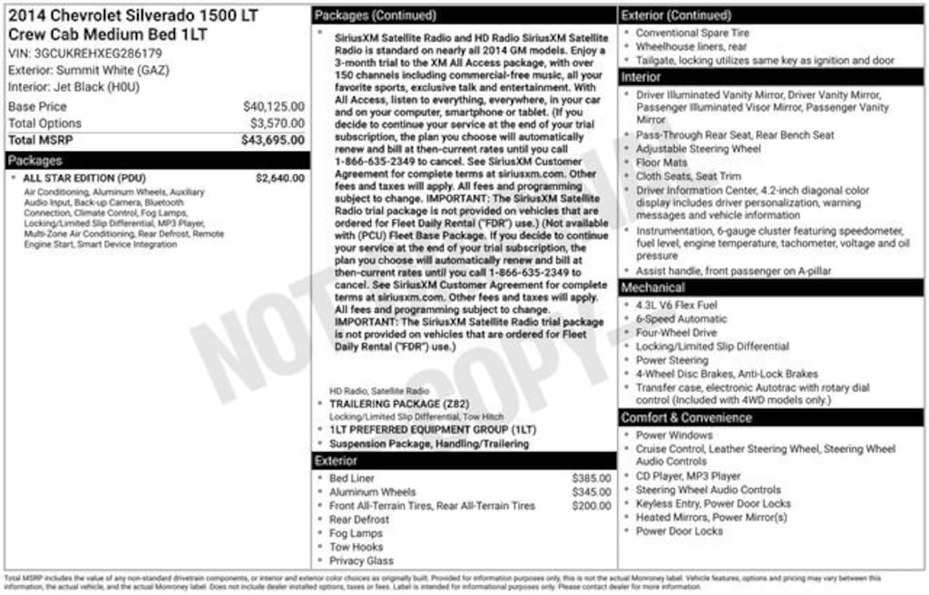 - Engine : EcoTec3 4.3L V-6 gasoline direct injection, variable valve control, regular unleaded, engine with cylinder deactivation and 285HP