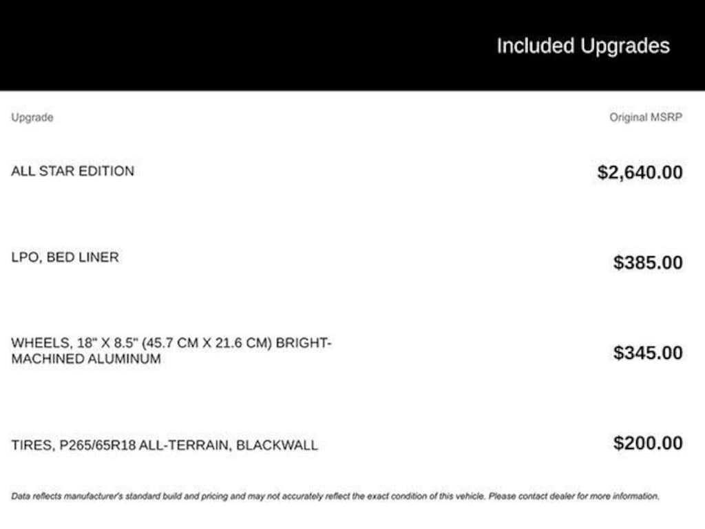 - Tires : P265/65SR18 AT BSW front and rear tires