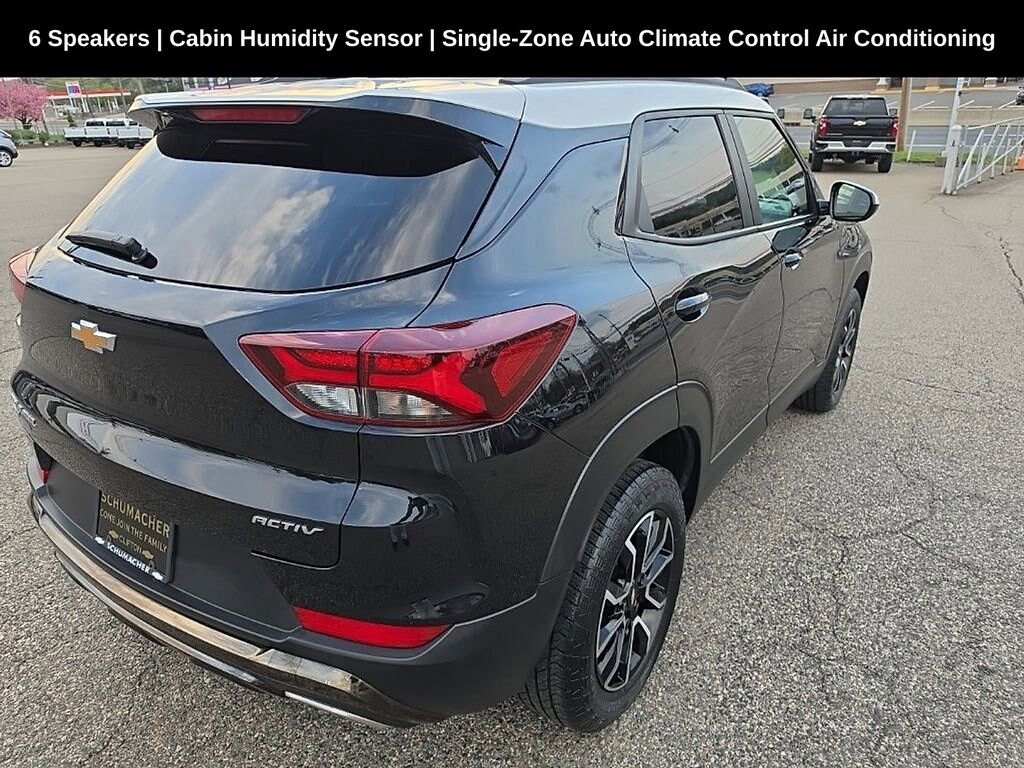 Schumacher Chevrolet of Clifton is pumped up to offer this attractive 2023 Chevrolet TrailBlazer ACTIV in Mosaic Black Metallic Beautifully equipped with Convenience Package (1 Type-A & 1 Type-C USB Charging-Only Ports, 120-Volt Power Outlet, 8 Diagonal Color Touchscreen Display, Cabin Humidity Sensor, Driver & Front Passenger Illuminated Vanity Mirrors, Inside Rear-View Auto-Dimming Mirror, and Single-Zone Auto Climate Control Air Conditioning), Driver Confidence Package (Lane Change Alert w/Side Blind Zone Alert, Rear Cross Traffic Alert, and Rear Park Assist), Preferred Equipment Group 1SA (Heated Steering Wheel), 2-Way Power Driver Lumbar Seat Adjuster, 6 Speakers, 6-Speaker Audio System Feature w/Amplifier, 7 Diagonal Color Touchscreen, 8-Way Power Driver Seat Adjuster, Auto High-beam Headlights, Heated door mirrors, Heated Driver & Front Passenger Seats, Power driver seat, Power windows, Radio: Chevrolet Infotainment 3 System, Remote keyless entry, Ride & Handling Suspension, Security system, SiriusXM Radio, Speed control, Steering wheel mounted audio controls, Tilt steering wheel, Wheels: 17 High Gloss Black Machined Aluminum, Wireless Apple CarPlay/Android Auto, 2-Way Adjustable Front Head Restraints, 3.17 Axle Ratio, 4-Way Manual Front Passenger Seat Adjuster, 4-Wheel Disc Brakes, ABS brakes, Air Conditioning, Alloy wheels, AM/FM radio: SiriusXM, Brake assist, Bumpers: body-color, Compass, Delay-off headlights, Driver door bin, Driver vanity mirror, Dual front impact airbags, Dual front side impact airbags, Electronic Stability Control, Emergency communication system: OnStar and Chevrolet connected services capable, Exterior Parking Camera Rear, Flat-Folding Front Passenger Seatback, Front anti-roll bar, Front Bucket Seats, Front Center Armrest, Front fog lights, Front License Plate Bracket, Front reading lights, Front wheel independent suspension, Fully automatic headlights, Heated front seats, Heated steering wheel, Illuminated entry, Knee airbag, Leather Shift Knob, Leather steering wheel, Leatherette Seat Trim, Low tire pressure warning, Not Equipped w/Rear Park Assist (060), Occupant sensing airbag, Overhead airbag, Overhead console, Panic alarm, Passenger door bin, Passenger vanity mirror, Power door mirrors, Power steering, Radio data system, Rear seat center armrest, Rear side impact airbag, Rear window defroster, Rear window wiper, Split folding rear seat, Spoiler, Summit White Two-Tone Roof, Tachometer, Telescoping steering wheel, Traction control, Trip computer, and Variably intermittent wipers!