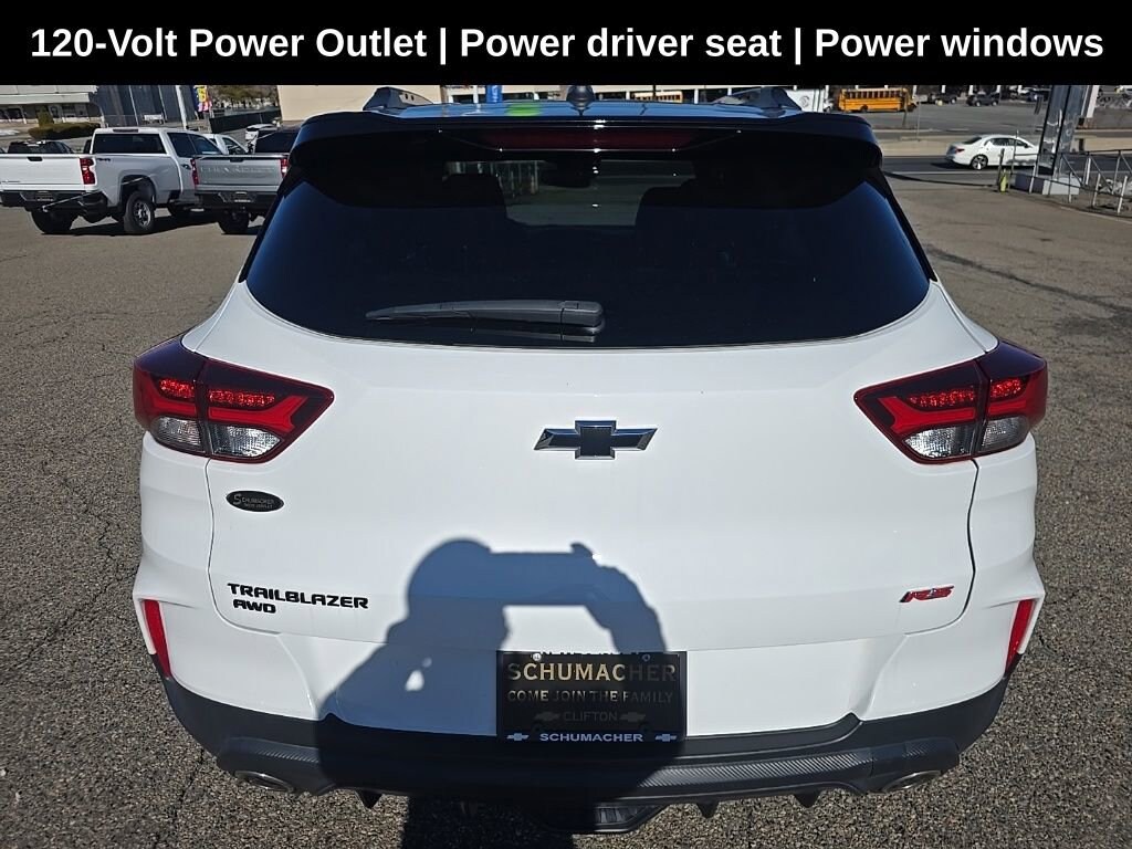 Schumacher Chevrolet of Clifton is proud to offer this wonderful-looking 2023 Chevrolet TrailBlazer RS in Summit White Beautifully equipped with Convenience Package (1 Type-A & 1 Type-C USB Charging-Only Ports, 120-Volt Power Outlet, 8 Diagonal Color Touchscreen Display, Cabin Humidity Sensor, Driver & Front Passenger Illuminated Vanity Mirrors, Inside Rear-View Auto-Dimming Mirror, and Single-Zone Auto Climate Control Air Conditioning), Preferred Equipment Group 1RS (Heated Steering Wheel), Confidence II Package (Rear Park Assist), 6-Speaker Audio System Feature w/Amplifier, 7 Diagonal Color Touchscreen, 8-Way Power Driver Seat Adjuster, Air Conditioning, Heated door mirrors, Heated steering wheel, Panic alarm, Power driver seat, Power windows, Radio: Chevrolet Infotainment 3 System, Security system, SiriusXM Radio, Speed control, Spoiler, Steering wheel mounted audio controls, Wheels: 18 High Gloss Black Machined Aluminum, Wireless Apple CarPlay/Android Auto, 2-Way Adjustable Front Head Restraints, 2-Way Power Driver Lumbar Seat Adjuster, 3.17 Axle Ratio, 4-Way Manual Front Passenger Seat Adjuster, 4-Wheel Disc Brakes, 6 Speakers, ABS brakes, Alloy wheels, AM/FM radio: SiriusXM, Auto High-beam Headlights, Brake assist, Bumpers: body-color, Cloth w/Leatherette Seat Trim, Compass, Delay-off headlights, Driver door bin, Driver vanity mirror, Dual front impact airbags, Dual front side impact airbags, Electronic Stability Control, Emergency communication system: OnStar and Chevrolet connected services capable, Exterior Parking Camera Rear, Flat-Folding Front Passenger Seatback, Front anti-roll bar, Front Bucket Seats, Front Center Armrest, Front fog lights, Front License Plate Bracket, Front reading lights, Front wheel independent suspension, Fully automatic headlights, Heated Driver & Front Passenger Seats, Heated front seats, Illuminated entry, Knee airbag, Leather Shift Knob, Leather steering wheel, Low tire pressure warning, Mosaic Black Metallic Two-Tone Roof, Not Equipped w/Rear Park Assist (060), Occupant sensing airbag, Overhead airbag, Overhead console, Passenger door bin, Passenger vanity mirror, Power door mirrors, Power steering, Radio data system, Rear seat center armrest, Rear side impact airbag, Rear window defroster, Rear window wiper, Remote keyless entry, Ride & Handling Suspension, Split folding rear seat, Tachometer, Telescoping steering wheel, Tilt steering wheel, Traction control, Trip computer, and Variably intermittent wipers!