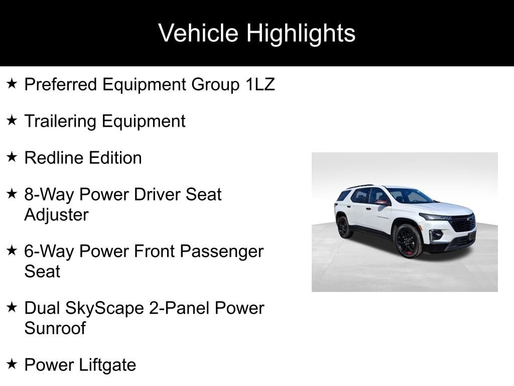 Designed with the discerning driver in mind, the Traverse Premier boasts a stunning Redline Edition package that elevates its already impressive presence. Featuring 20-inch Gloss Black painted aluminum wheels with Red accents, a Gloss Black window surround, and a host of other exclusive design elements, this Traverse commands attention wherever it goes.