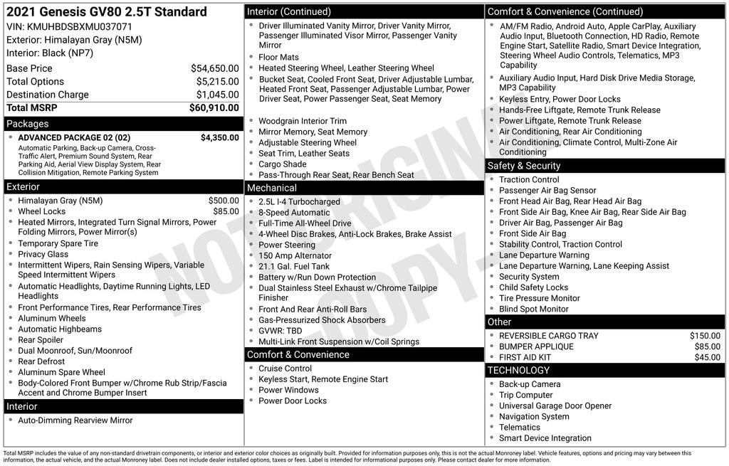 Used 2021 GenesisGV80 2.5T AWD All-wheel Drive